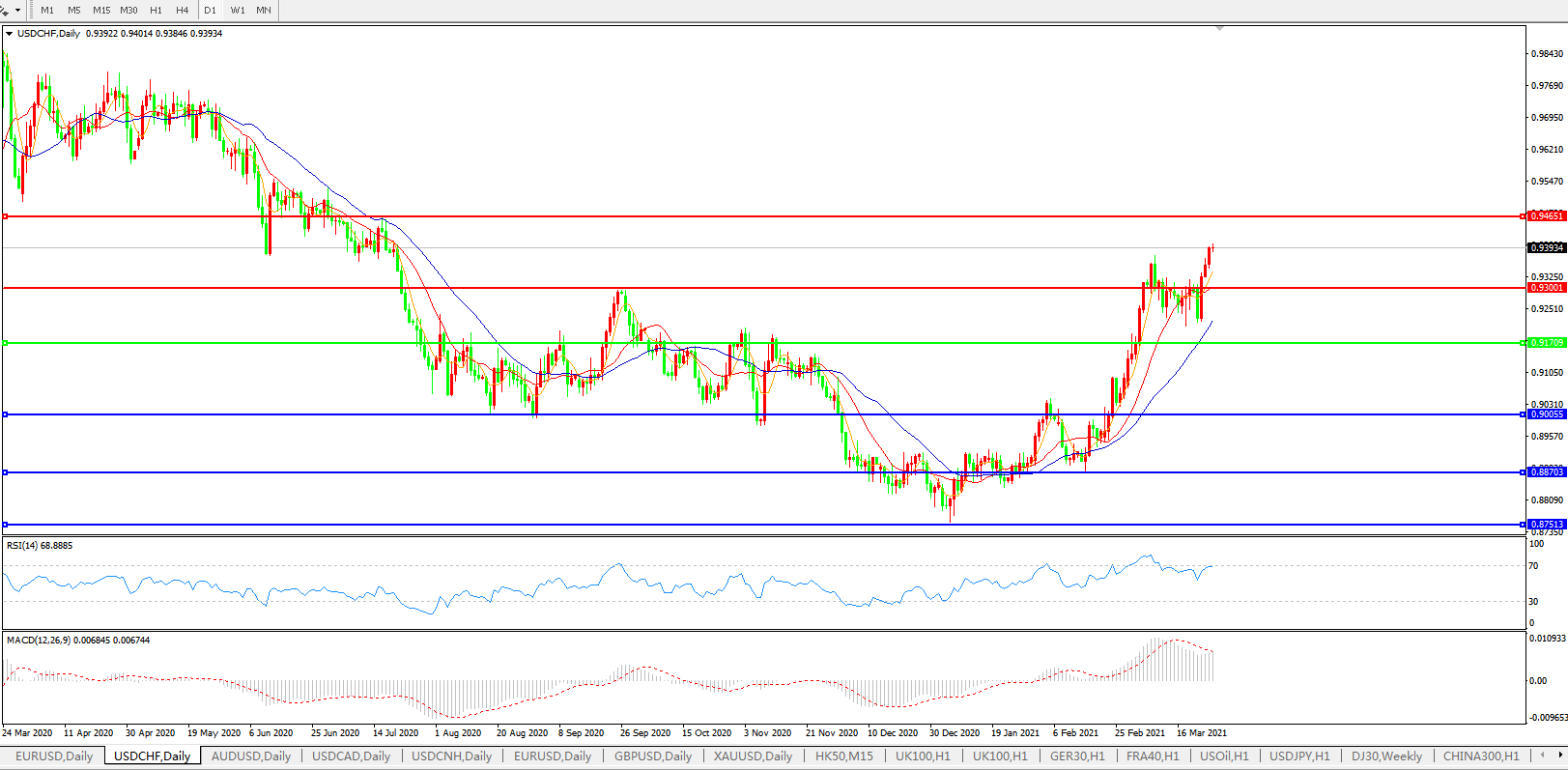 美元兑瑞郎USDCHF    日线图: