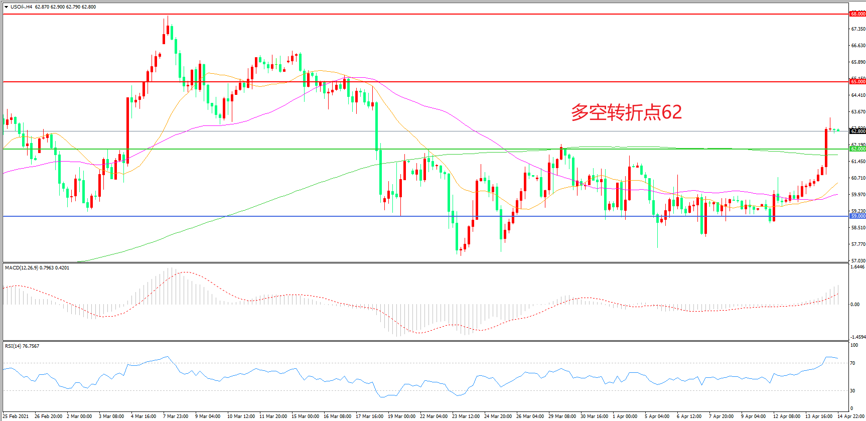 多空转折点:62.00