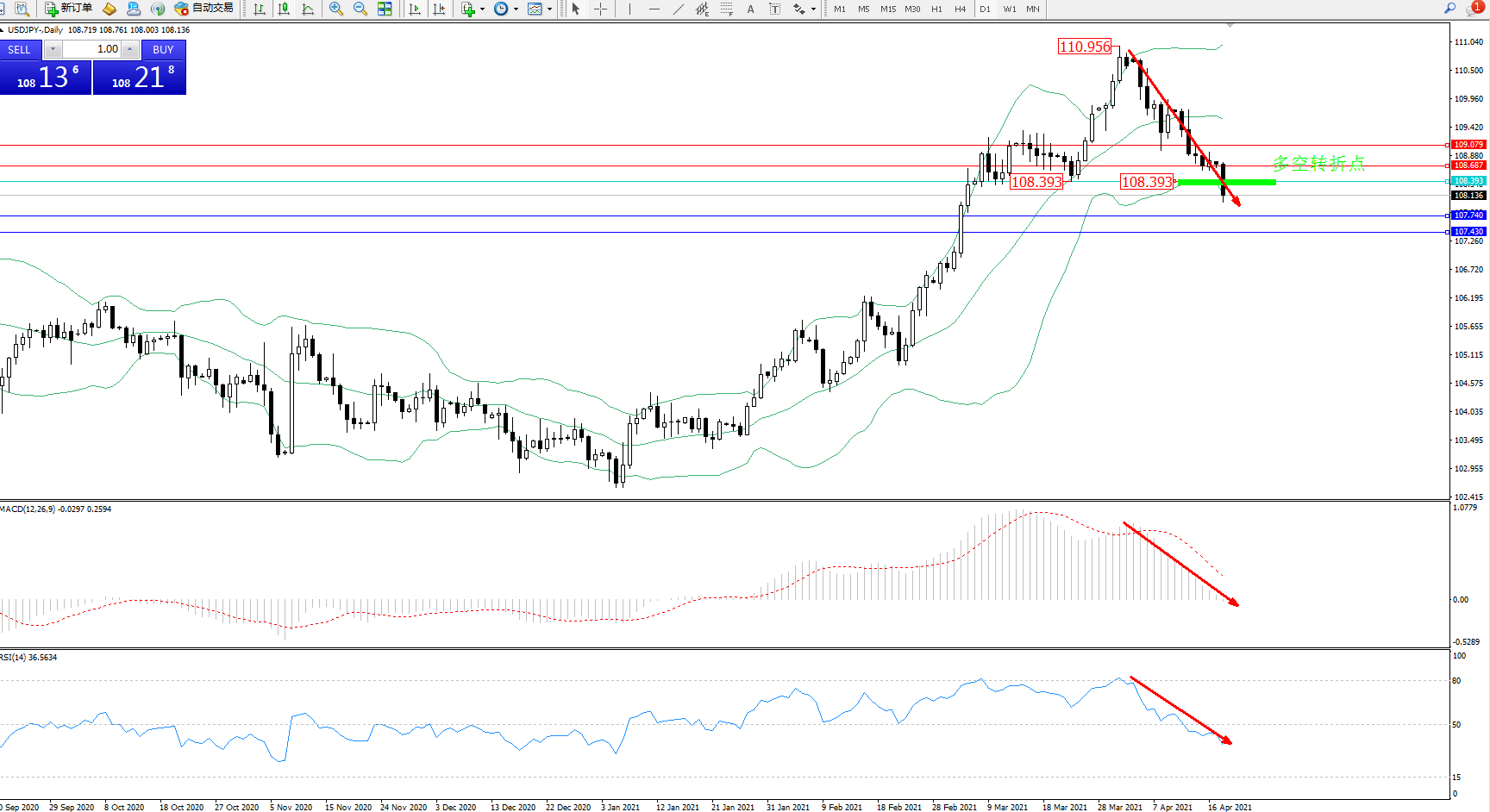 多空转折点:108.393