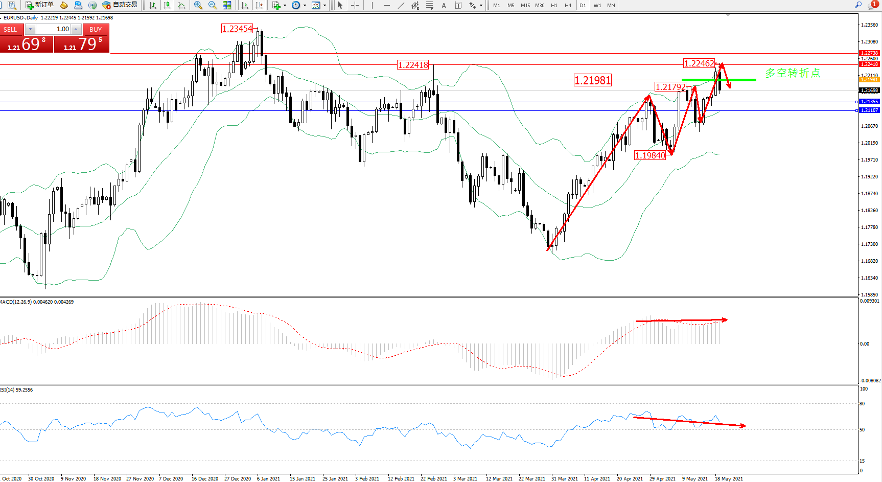 备选策略:1.21981上方看涨,目标1.22418、1.22738
