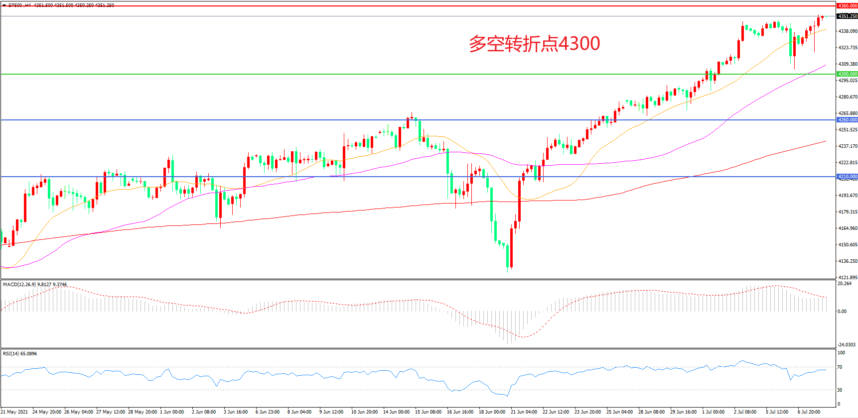 交易策略:在4300.00之上看涨,目标4360.00    4430.00