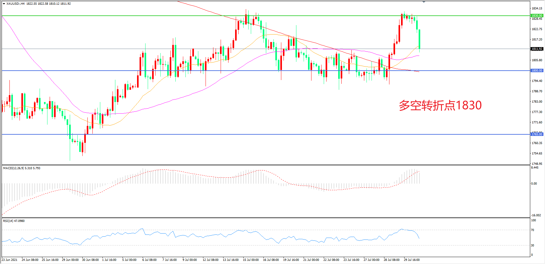 交易策略:  在1800.00之上看涨,目标1830.00       1860.00