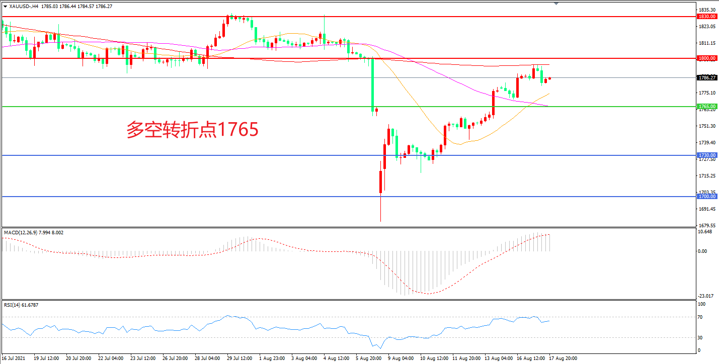 交易策略:  在1765.00之上看涨,目标1800.00           1830.00