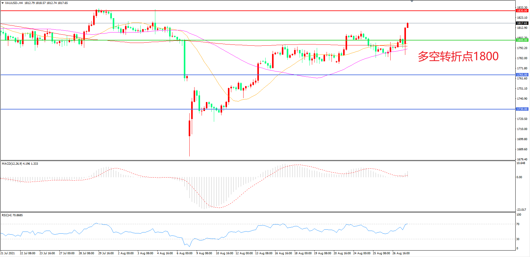 多空转折点:1800.00