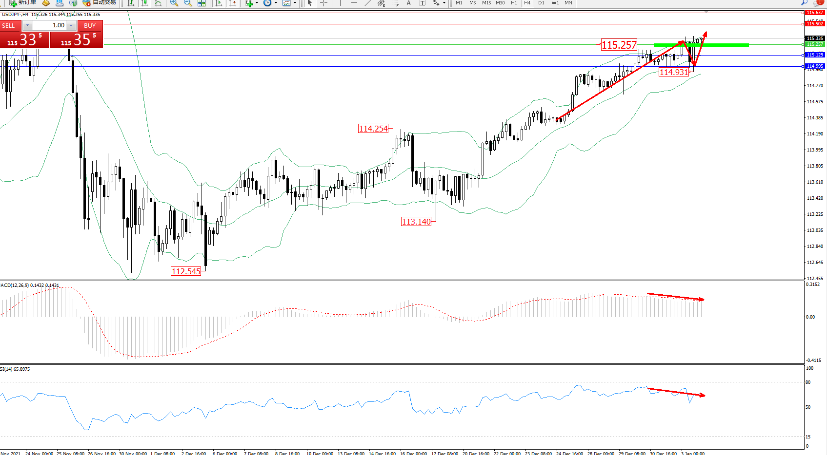 交易策略:115.257上方看涨,目标115.802、115.637