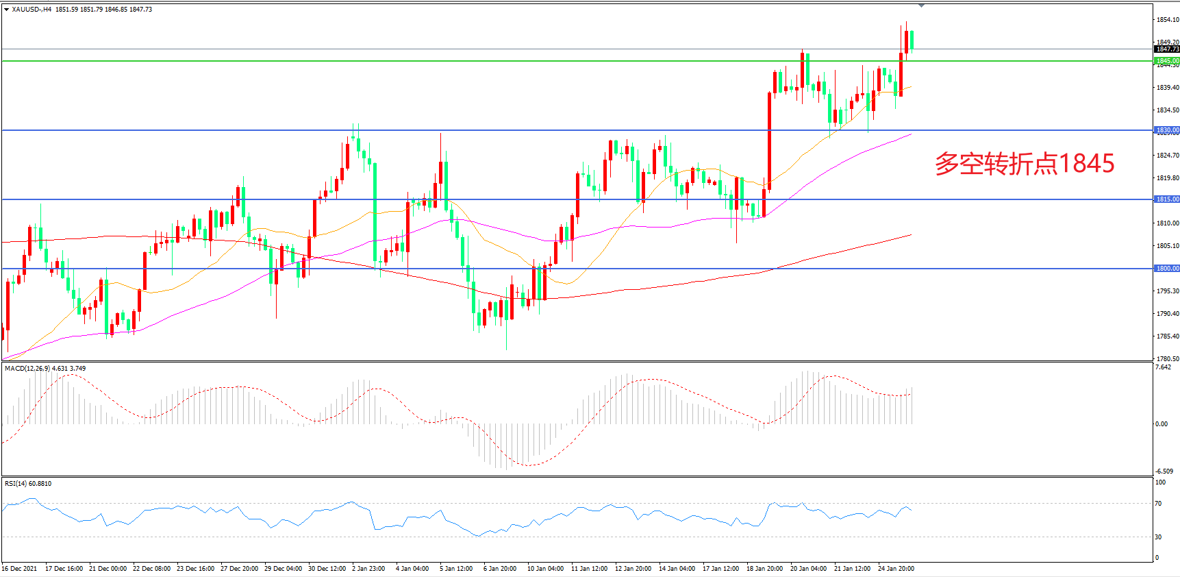 交易策略:在1845.00之上看涨,目标1860.00 1875.00