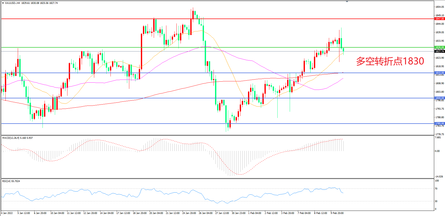 交易策略:在1830.00之上看涨,目标1847.00 1865.00