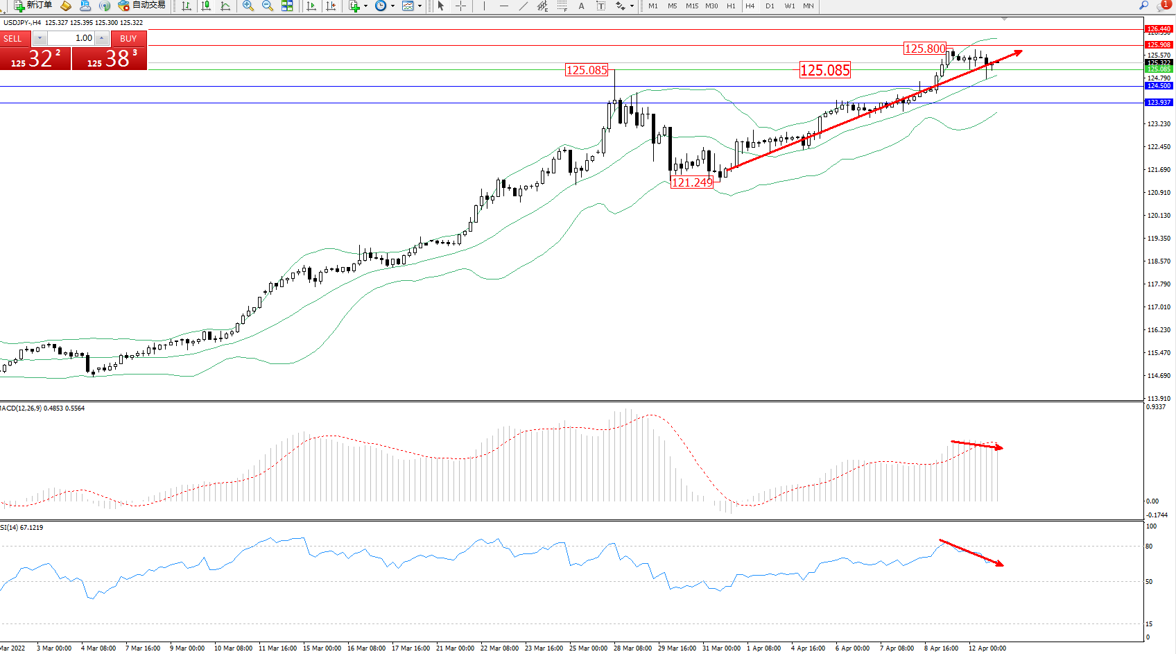 交易策略:125.085上方看涨,目标125.908、126.440