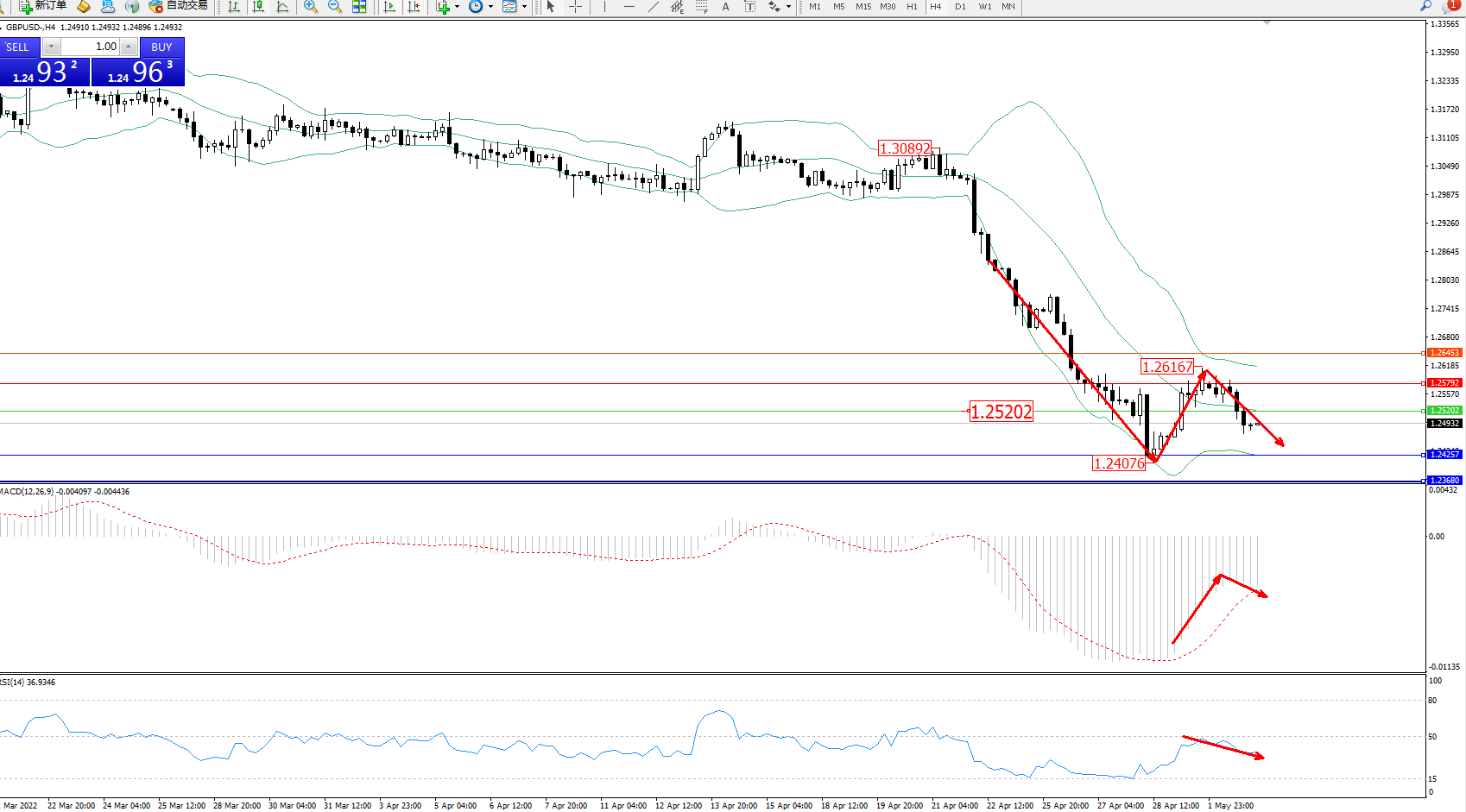 英镑美元GBPUSD ——4小时K线图显示: