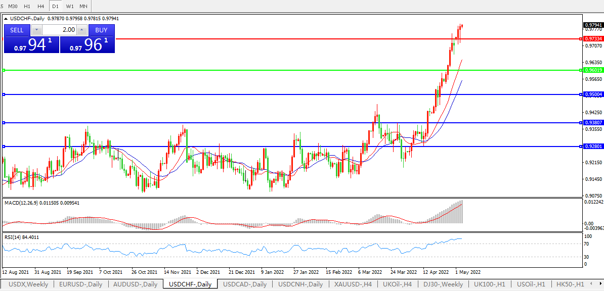 联储加息势在必行,美元兑瑞郎持续强势