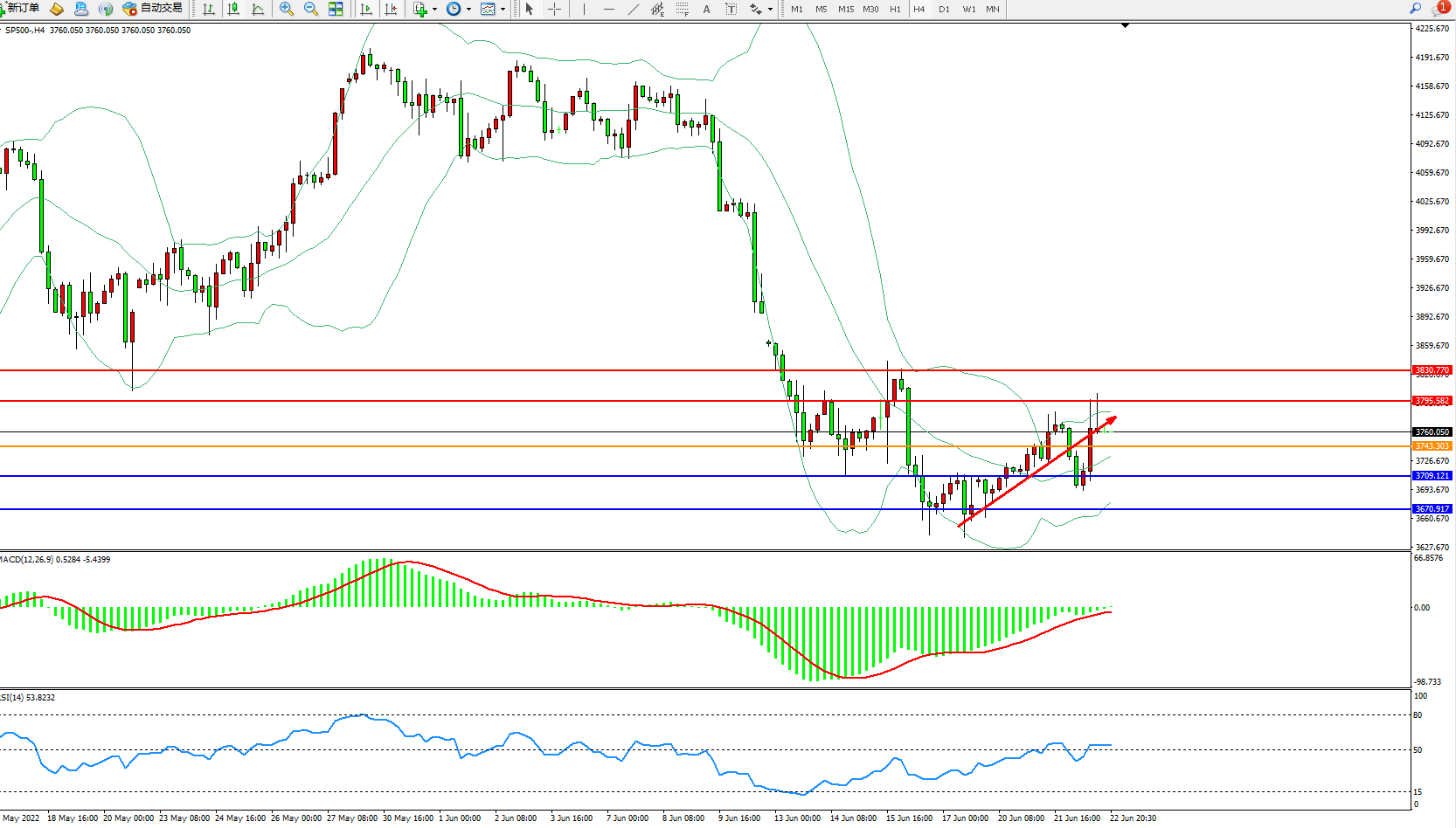 标普SP500——4小时K线图显示: