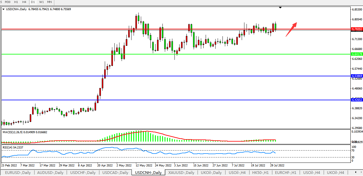 交易策略:在6.6416之上,看涨,目标价位为6.7600、6.8870