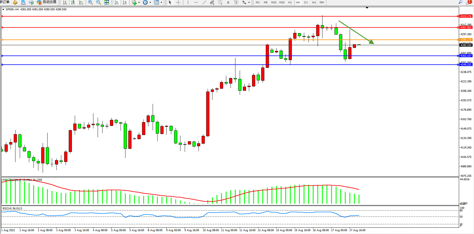 标普SP500——4小时K线图显示: