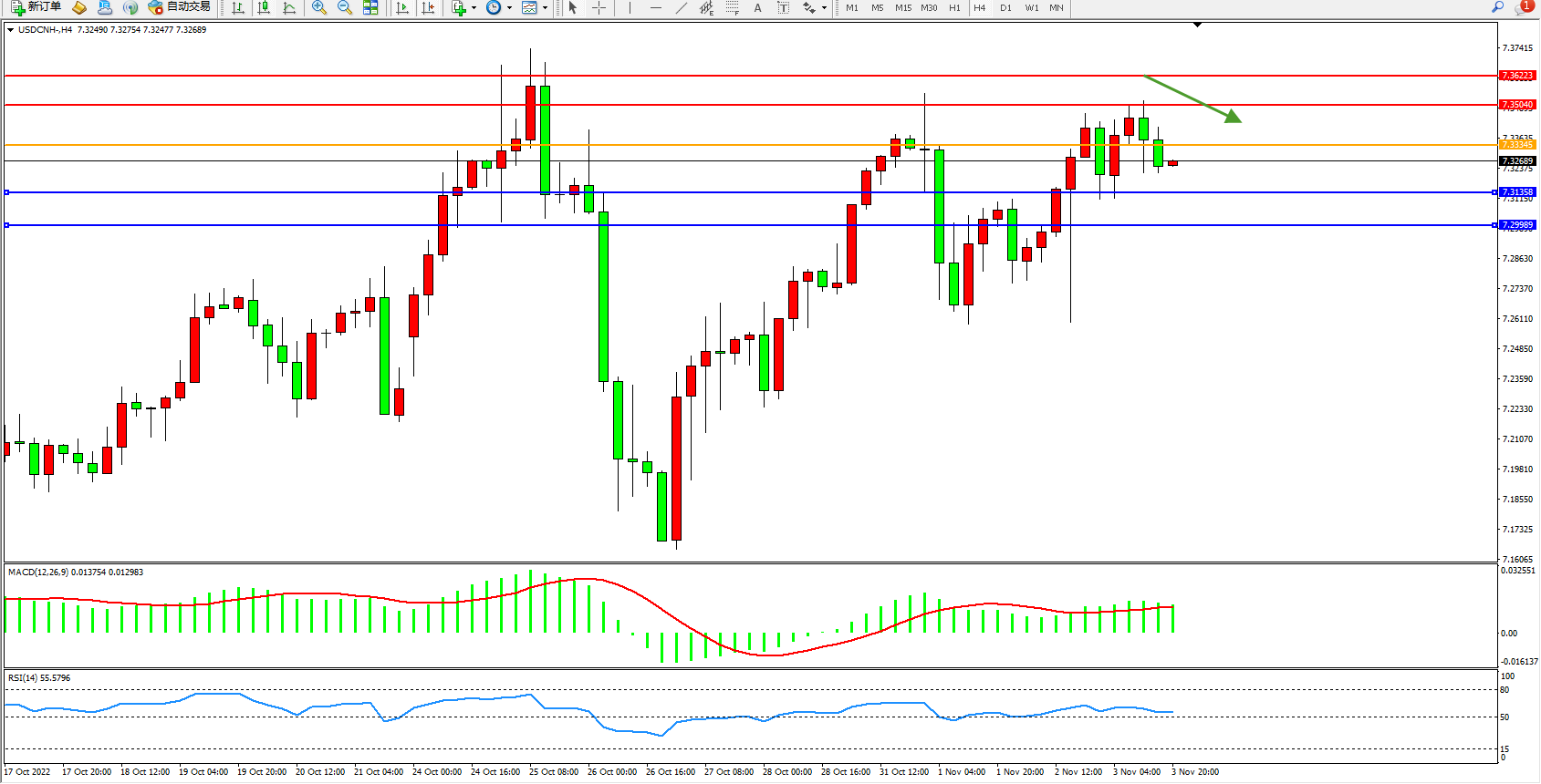 备选策略:7.33345上方看涨,目标7.35040、7.36223