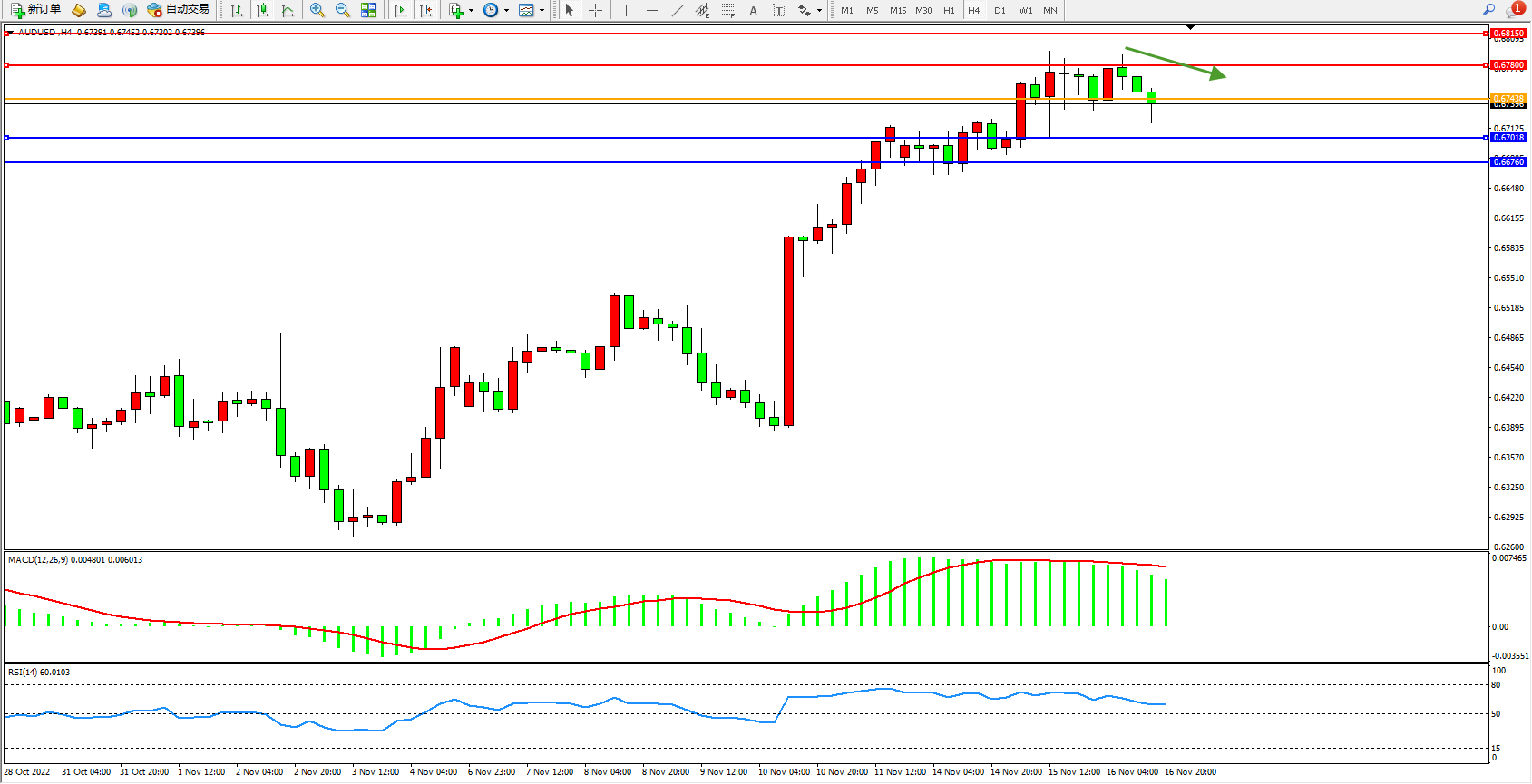 支撑:0.67018、0.66760