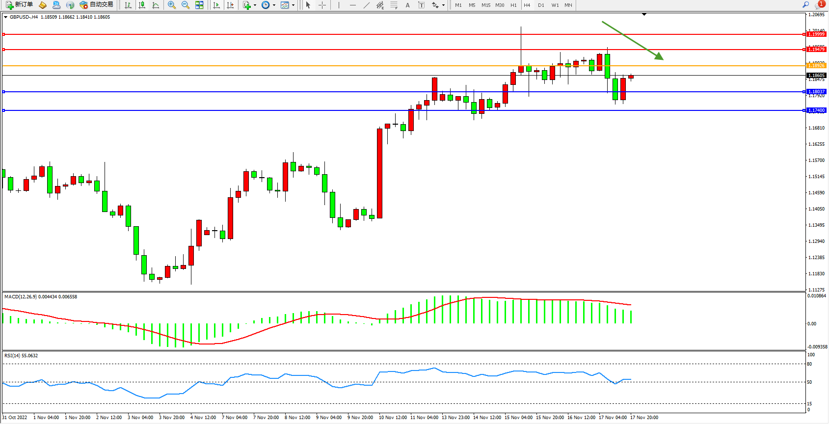 英镑美元GBPUSD ——4小时K线图显示:
