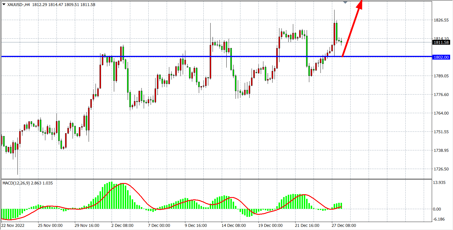 交易策略:在1802.00之上看涨,目标1820.00 1835.00
