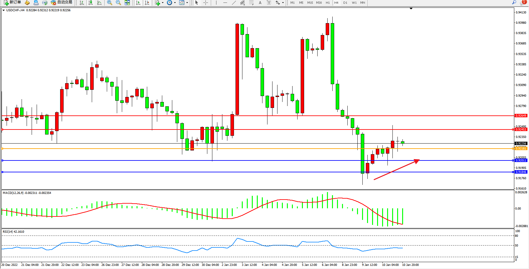 美元瑞郎USDCHF——4小时K线图显示: