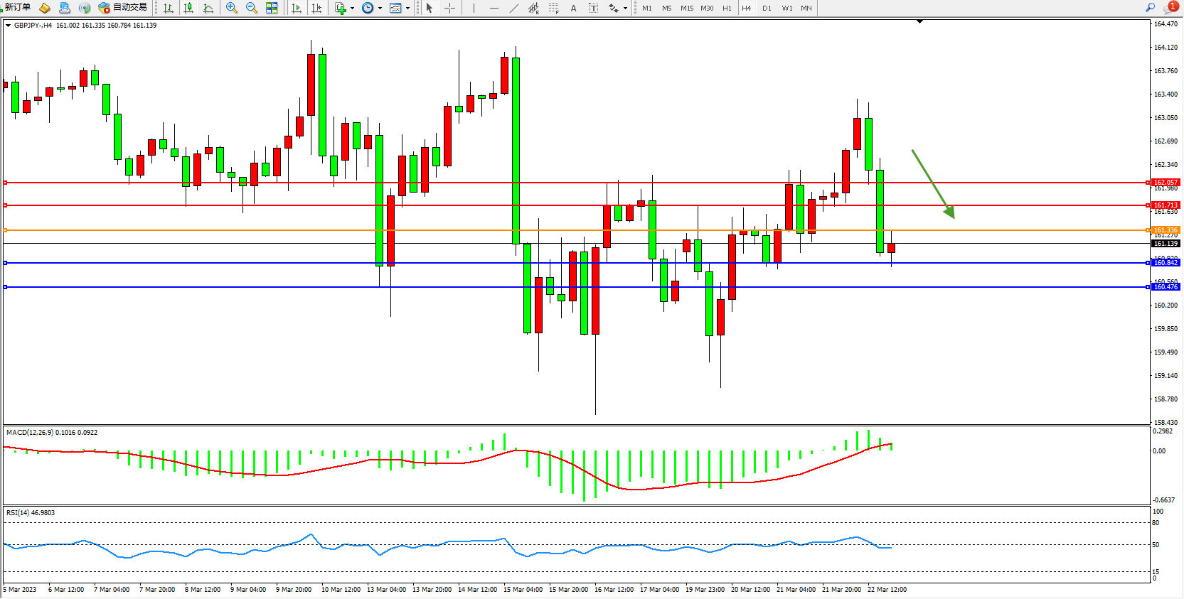 交易策略:161.336下方看跌,目标160.842 160.476