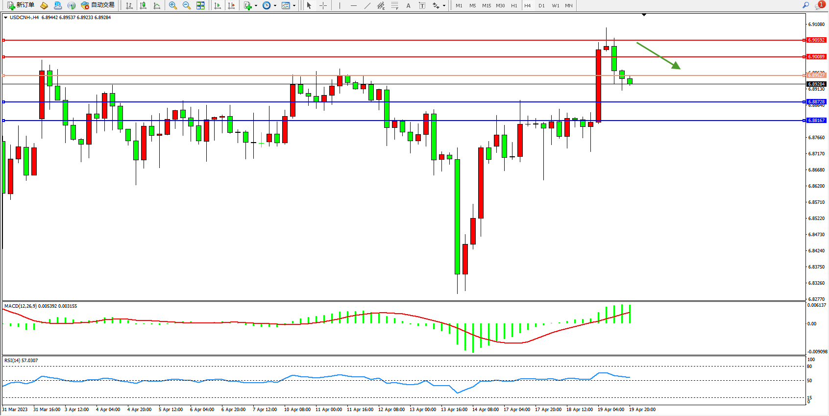 交易策略:6.89527下方看跌,目标6.88728 6.88167
