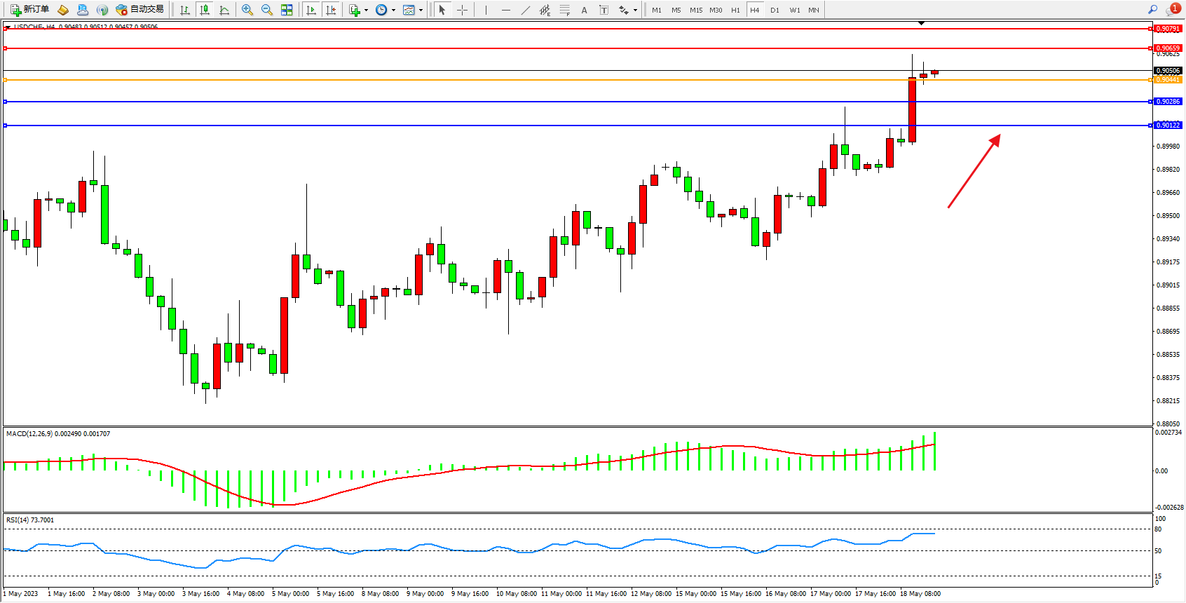美元瑞郎USDCHF——4小时K线图显示:
