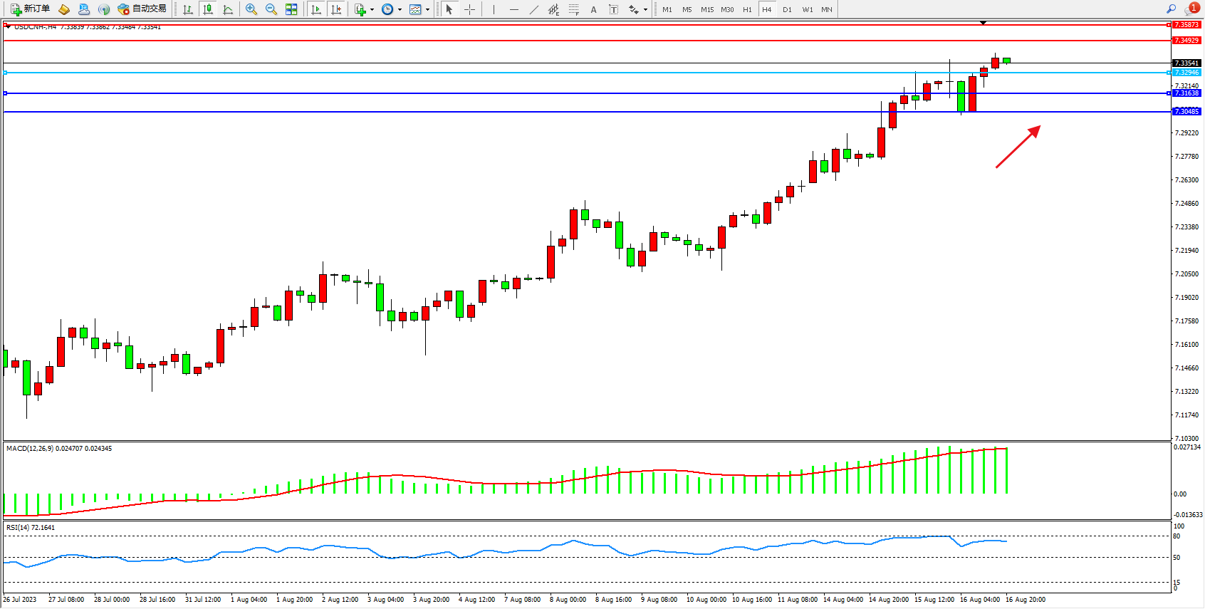 交易策略:7.32946上方看涨,目标7.34929  7.35873