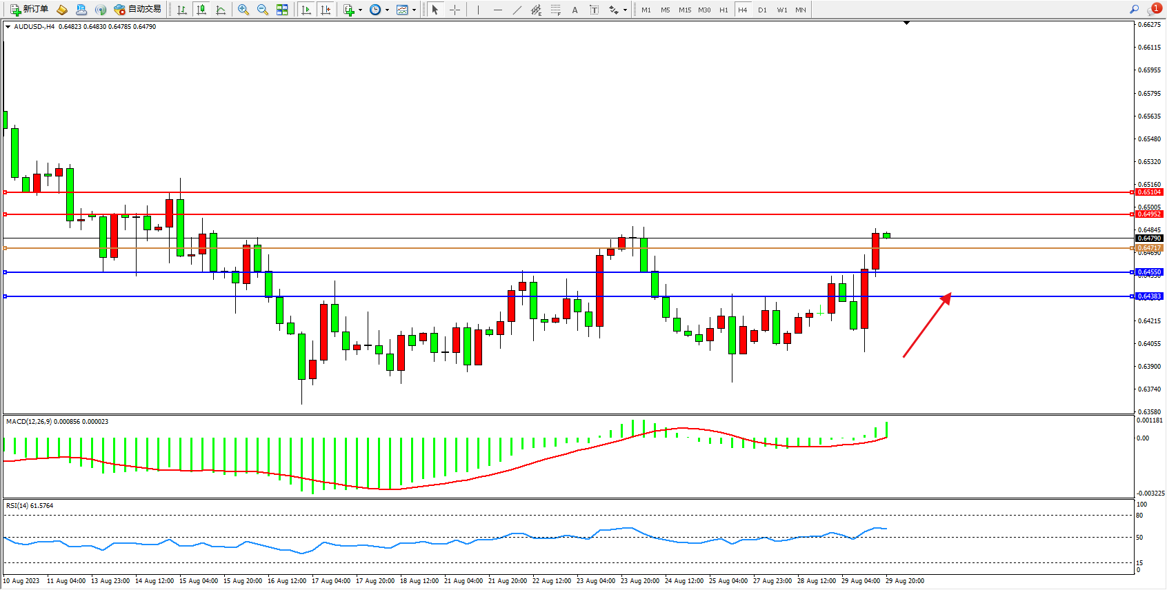 交易策略:0.64717上方看涨,目标0.64952  0.65104