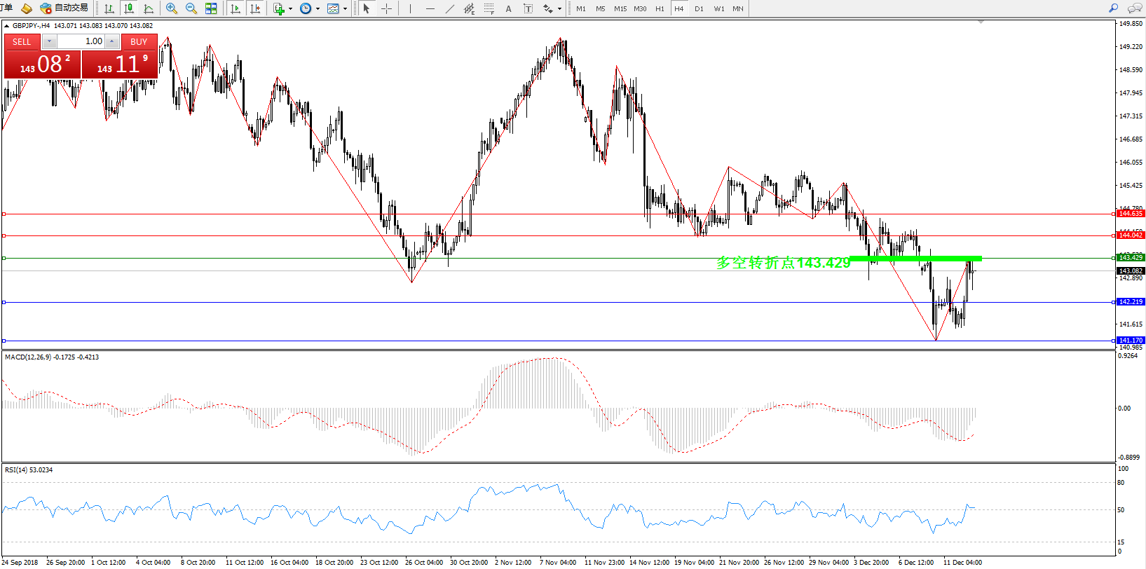 交易策略:143.429上方看涨,目标144.042144.635