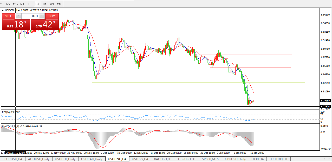 交易策略6.8242下,看跌,目标价位为6.7800,然后为 6.7564