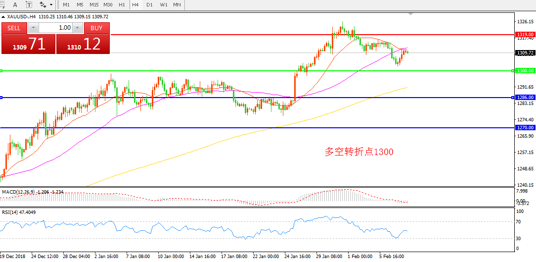 交易策略:在1300.00之上看涨,目标1320.00 1330.00