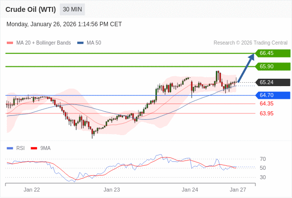 美国原油 (WTI) 期货 (H6) 当日内: 看涨。