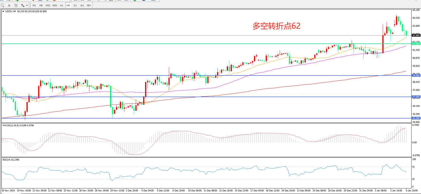 多空转折点:62.00