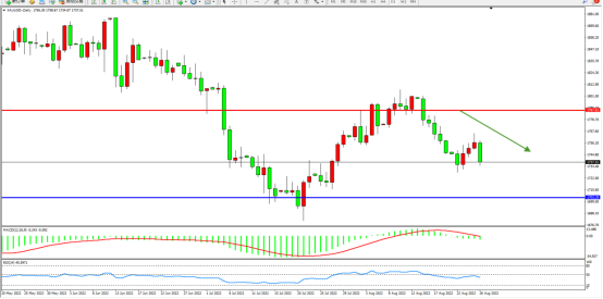 现货黄金下跌1.2%,至每盎司1738.14美元,连续第二周下跌。美联储主席鲍威尔在杰克森霍尔的演讲中表示,美国经济需要紧缩的货币政策,直到通胀得到控制;这可能意味着增长放缓,但没有暗示美联储在9月份的政策会议上可能采取什么措施。
