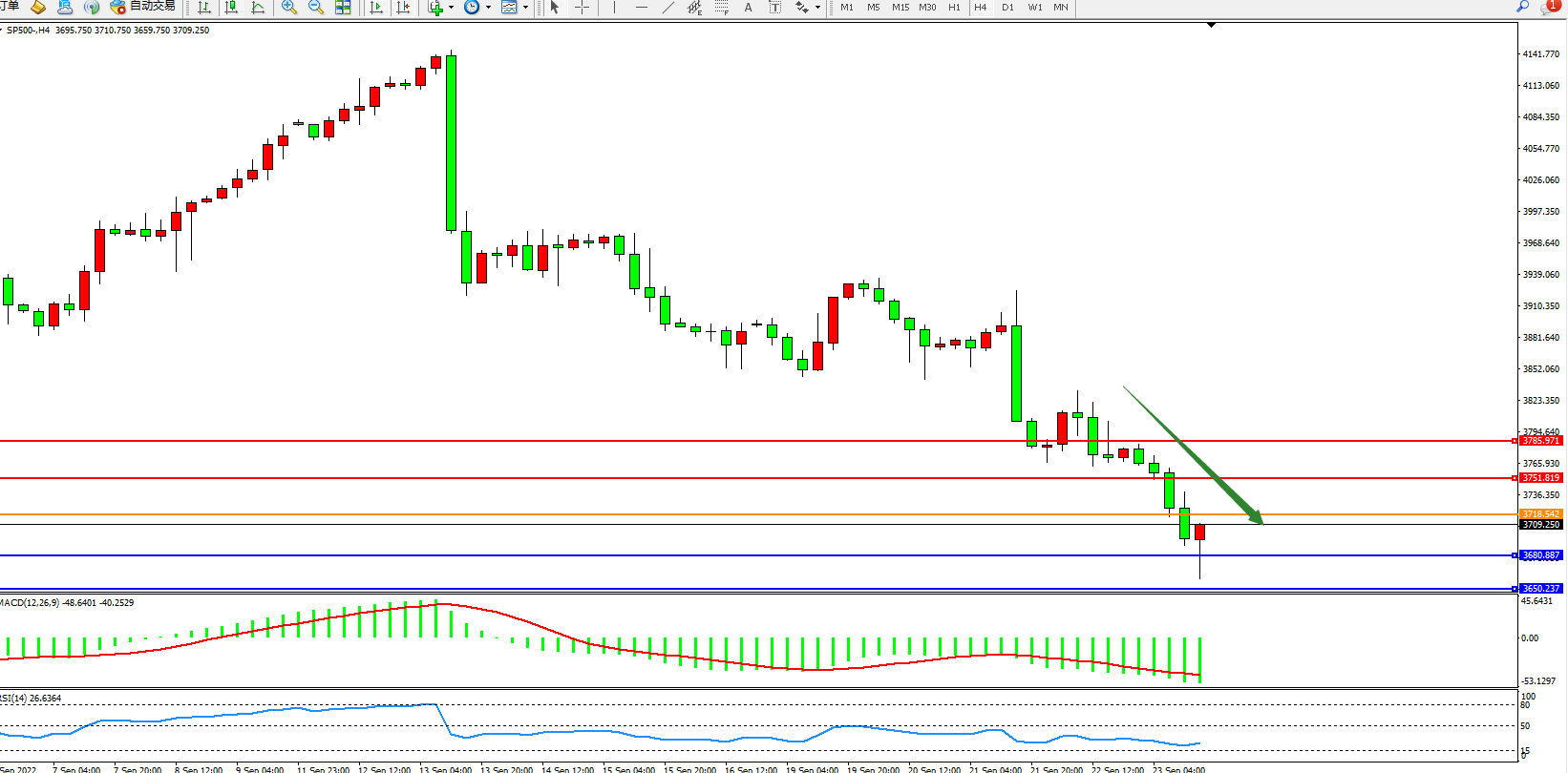 标普SP500——4小时K线图显示:
