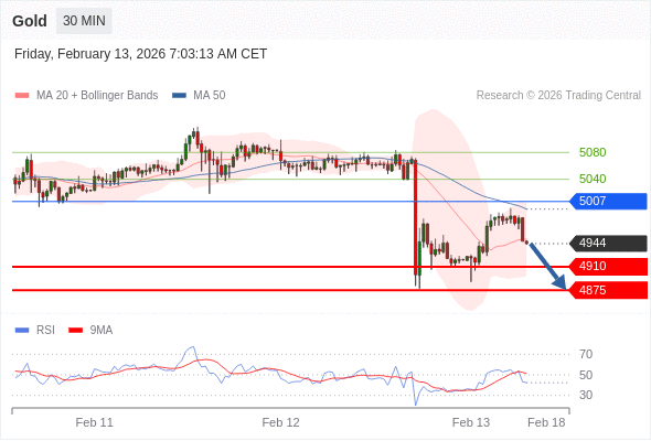在 5007 之下,看跌,目标价位为 4910 ,然后为 4875 。