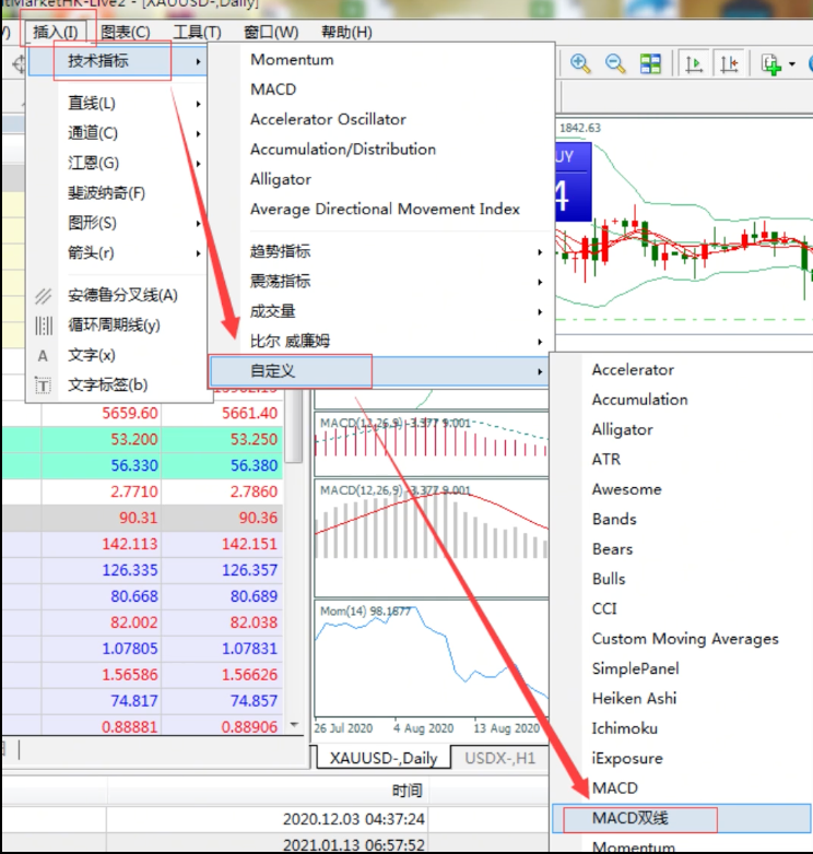 MT4电脑端和移动端MACD双线设置